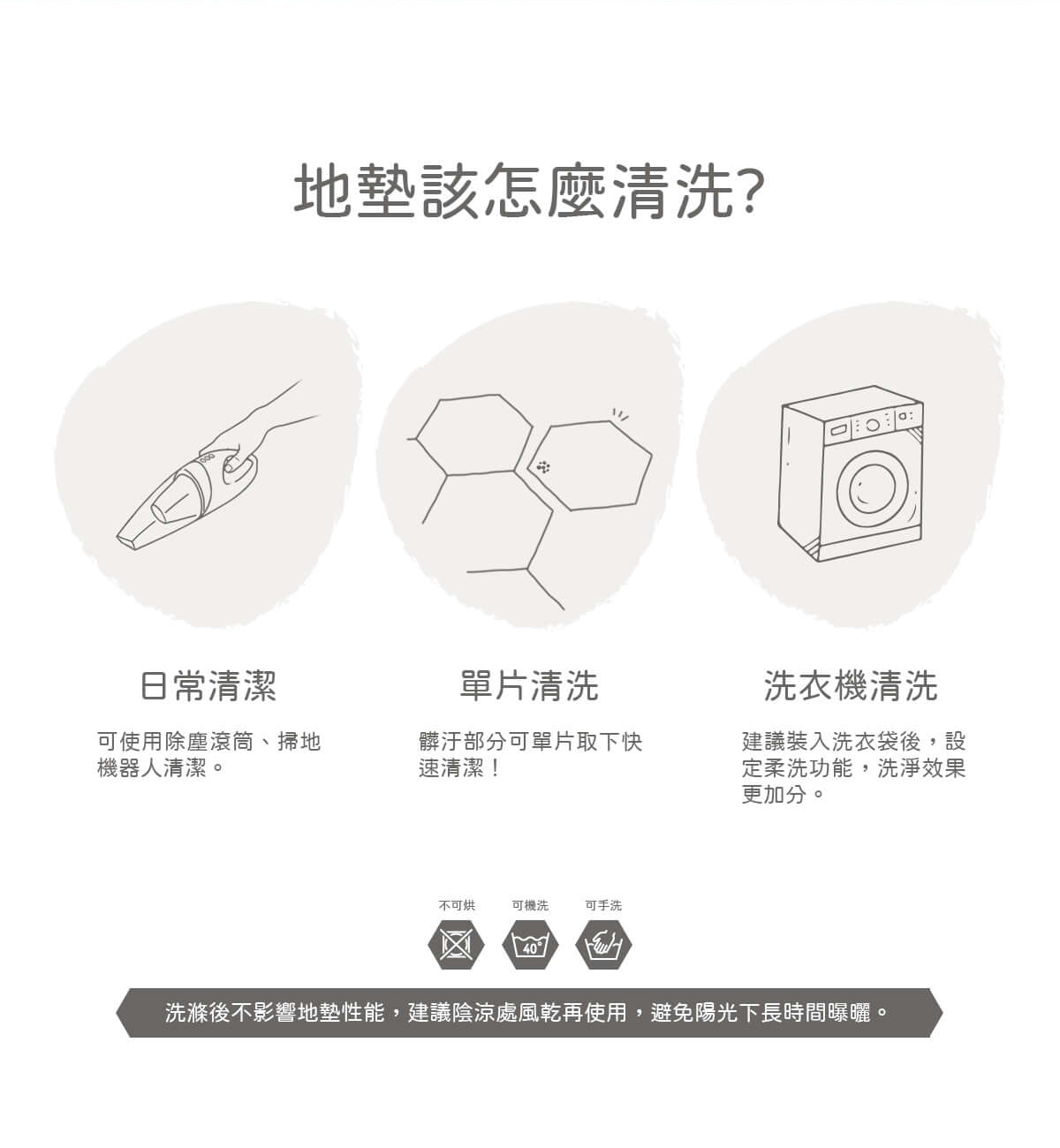 此款地墊可以手洗、機洗、拖把、吸塵。
