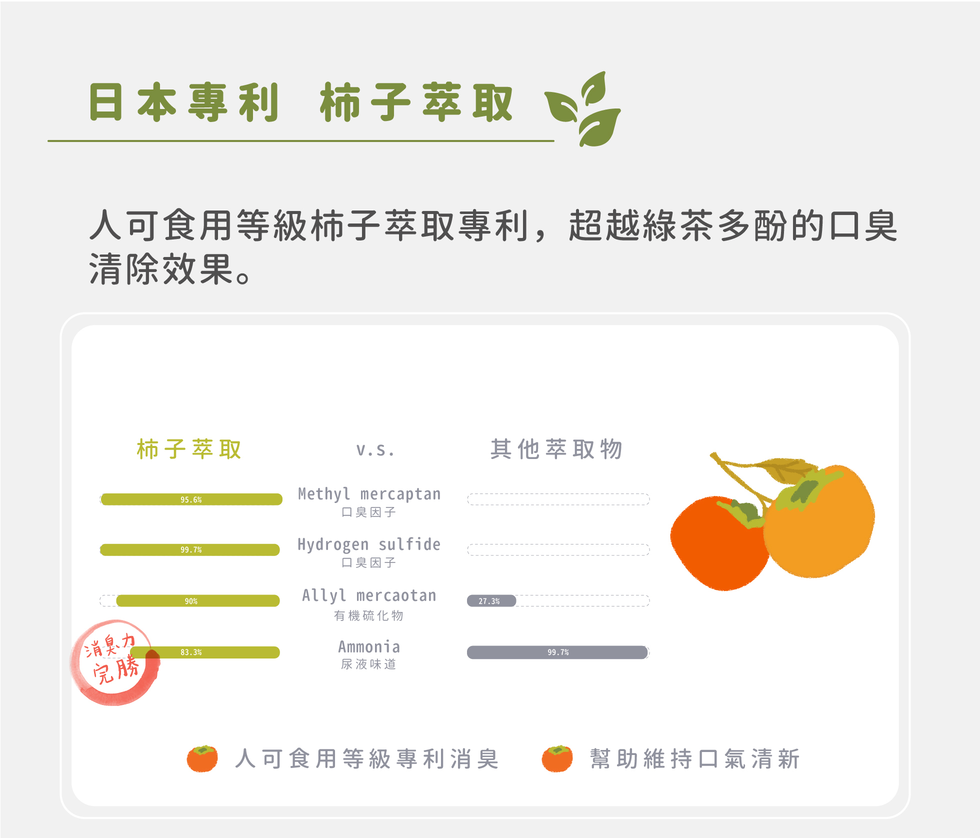 天然柿子萃取物、抗壞血酸AC、磷酸化抗菌因子ABP